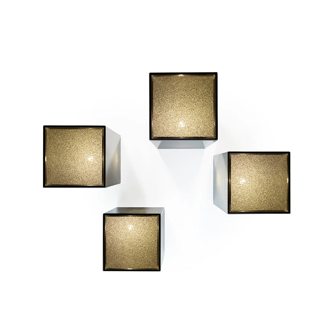 Lamp in extraclear or bronze bush-hammered glass, 8 mm thick with LED bulb.