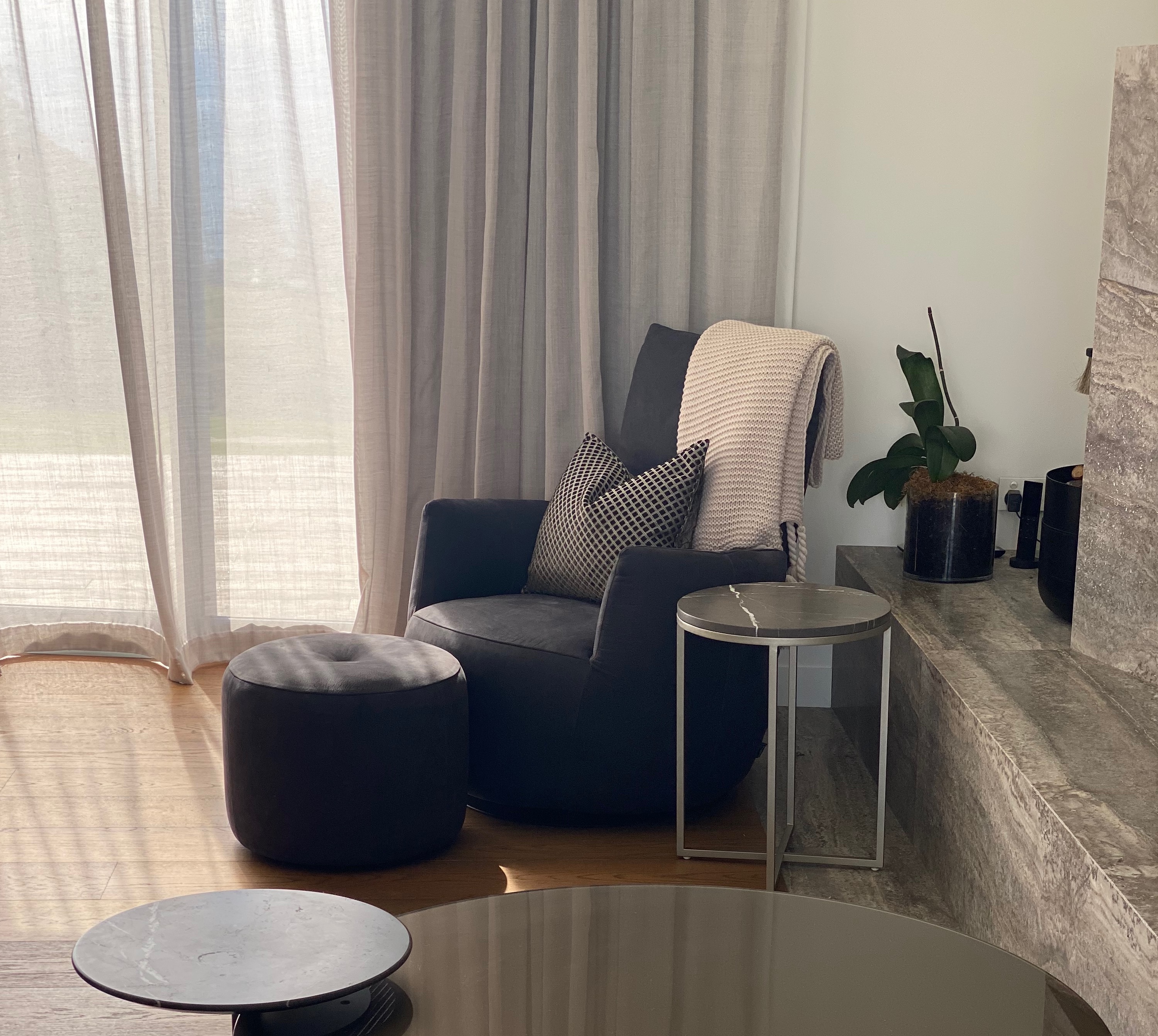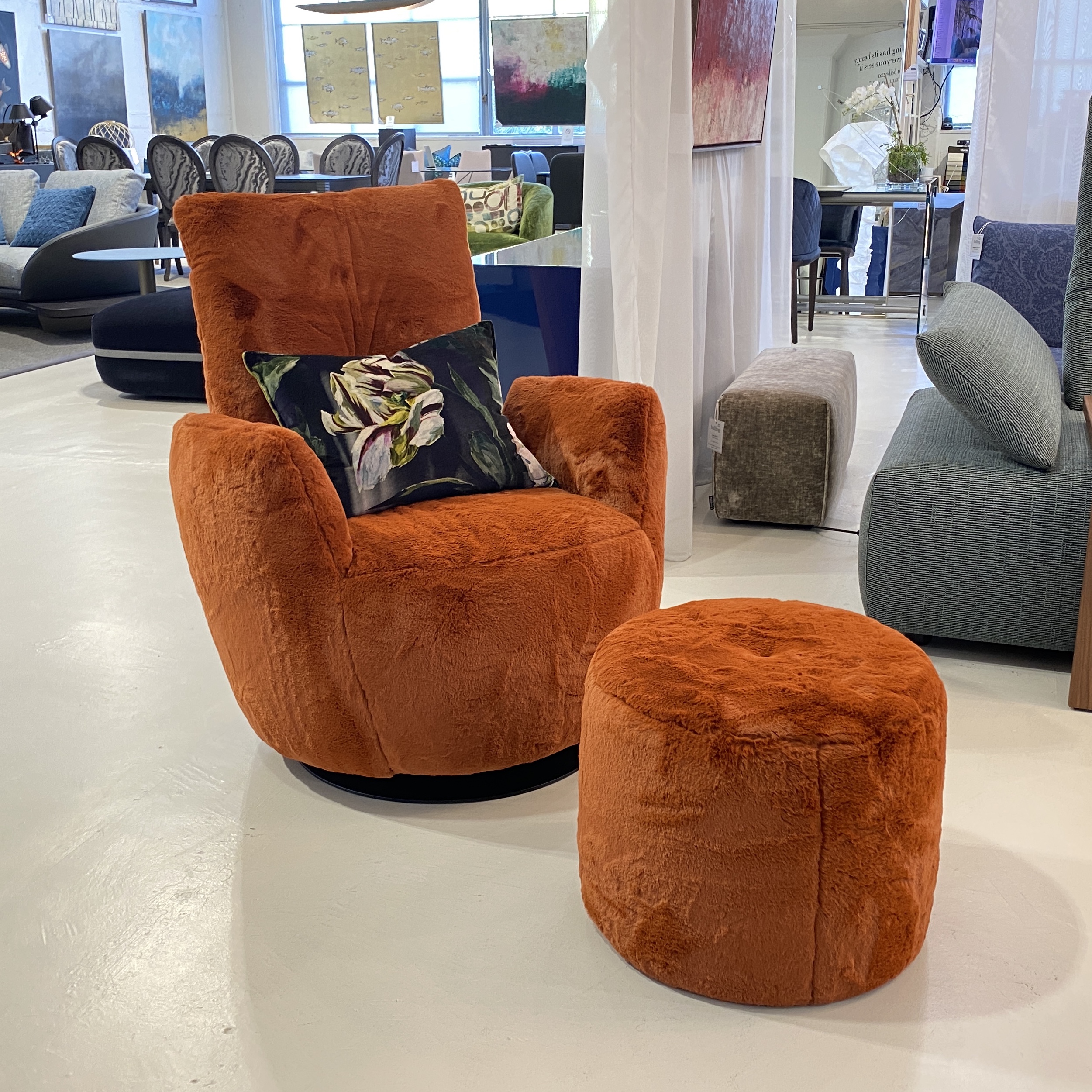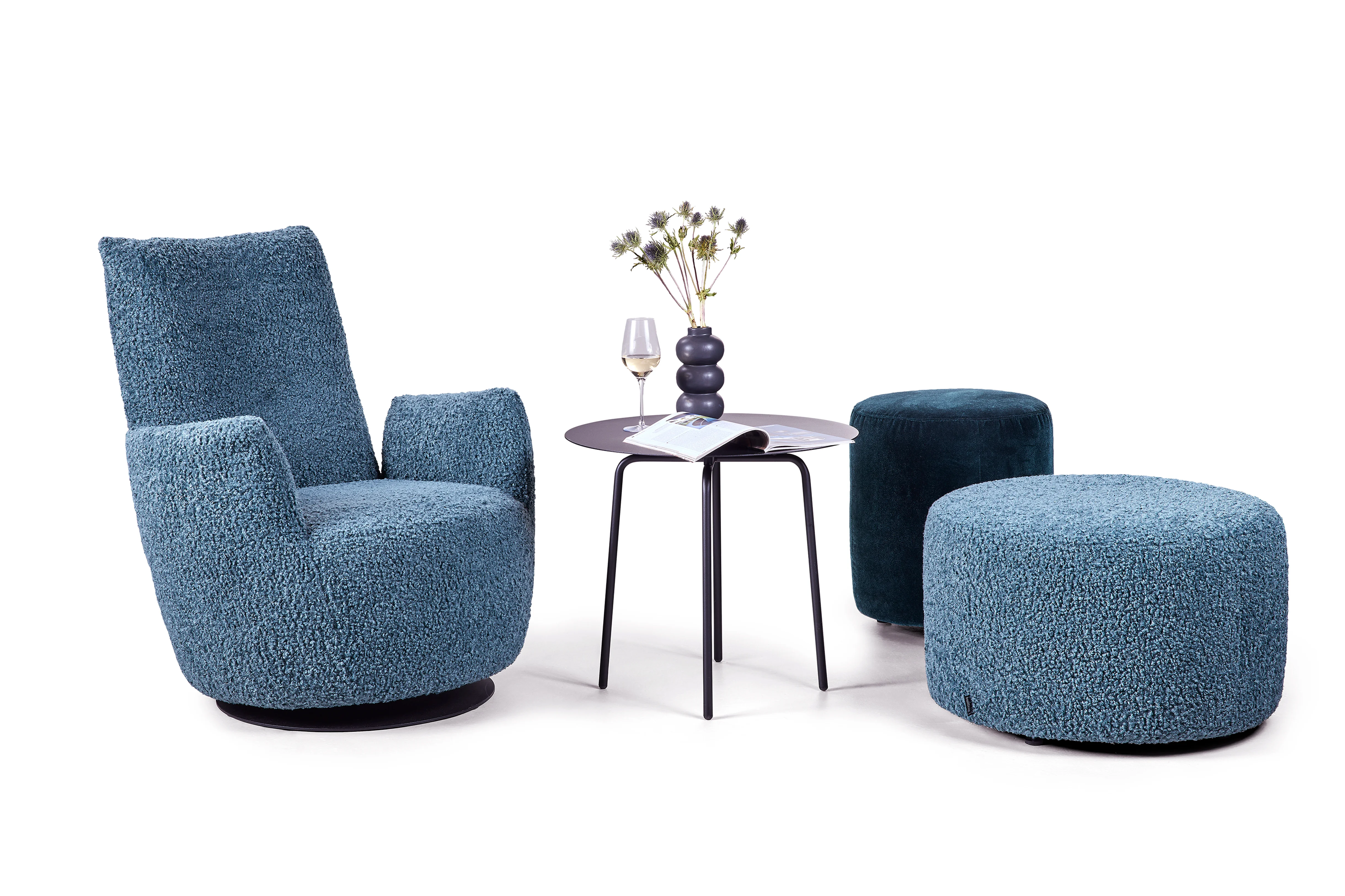 The Blobb is an armchair with a rocking and swivelling function. Optional additional footstool for extra comfort.