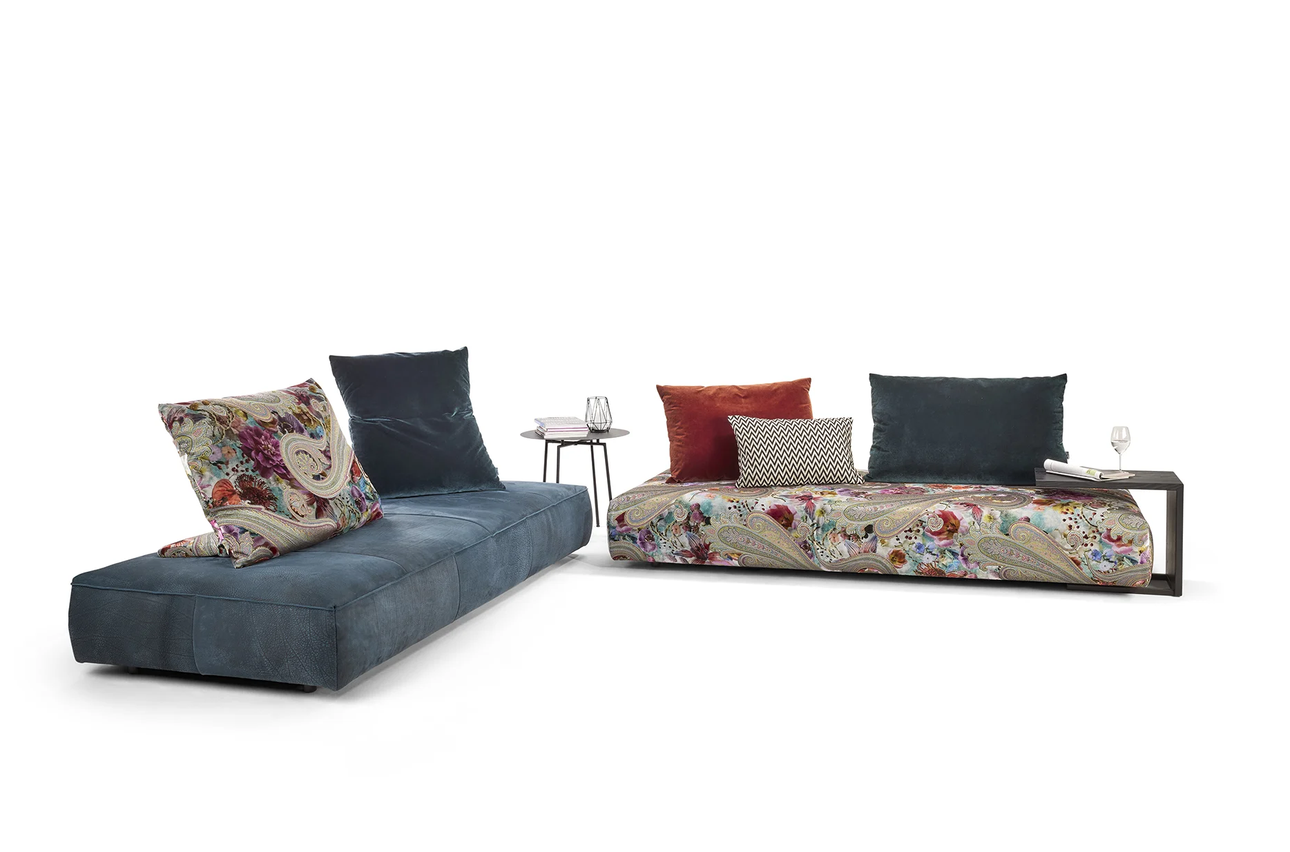A modern upholstered furniture system suited to an individual interior design with a variety of seat elements and suitable backs. The seating system works with flexible backs in different sizes. It presents a multitude of combinations for an individual style of living. Whether sitting, lying or sleeping, Iwan offers space to relax. The addition of the ottoman with high, fixed back and replacement slip allows for further flexibility and comfort options.