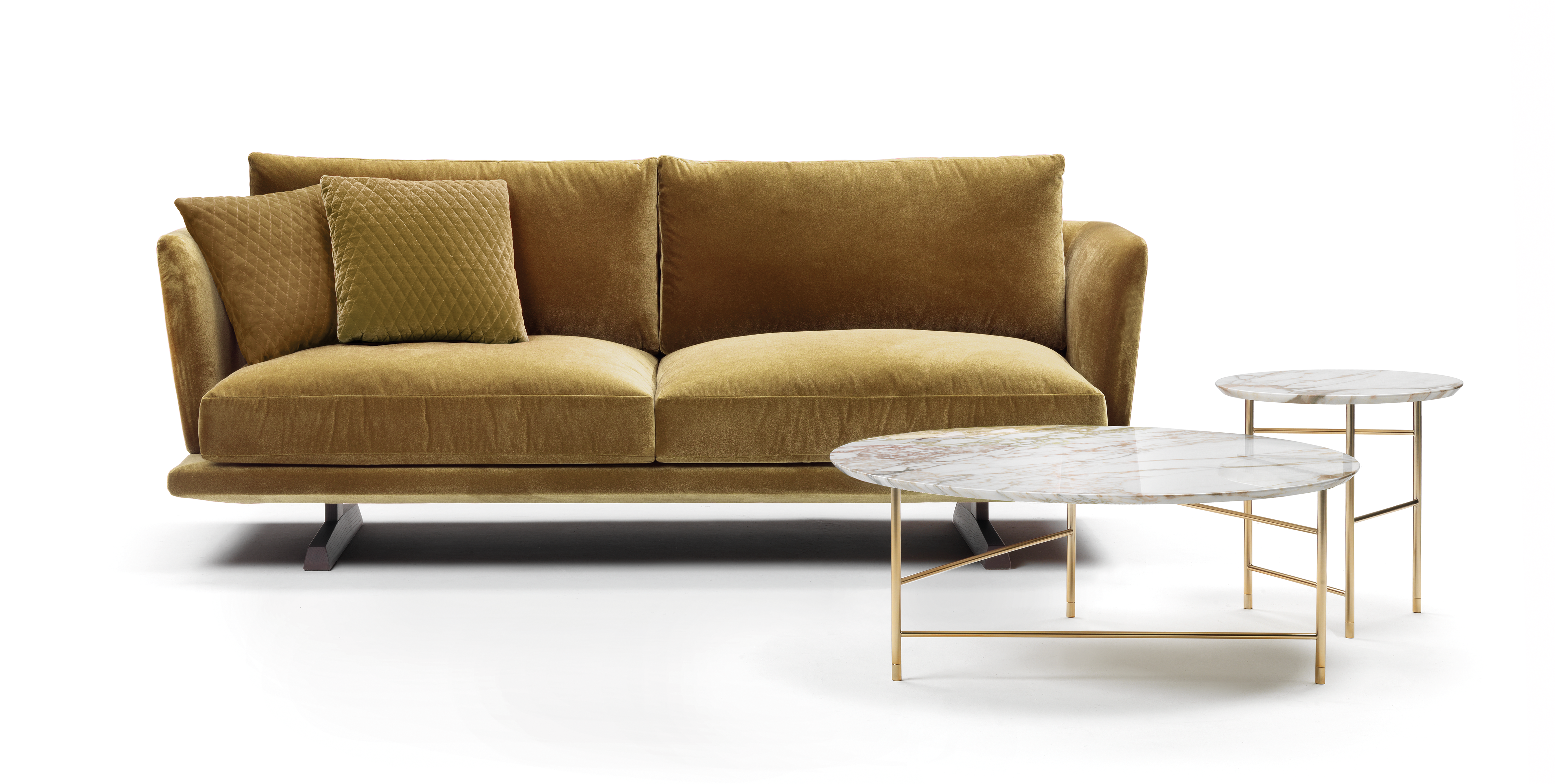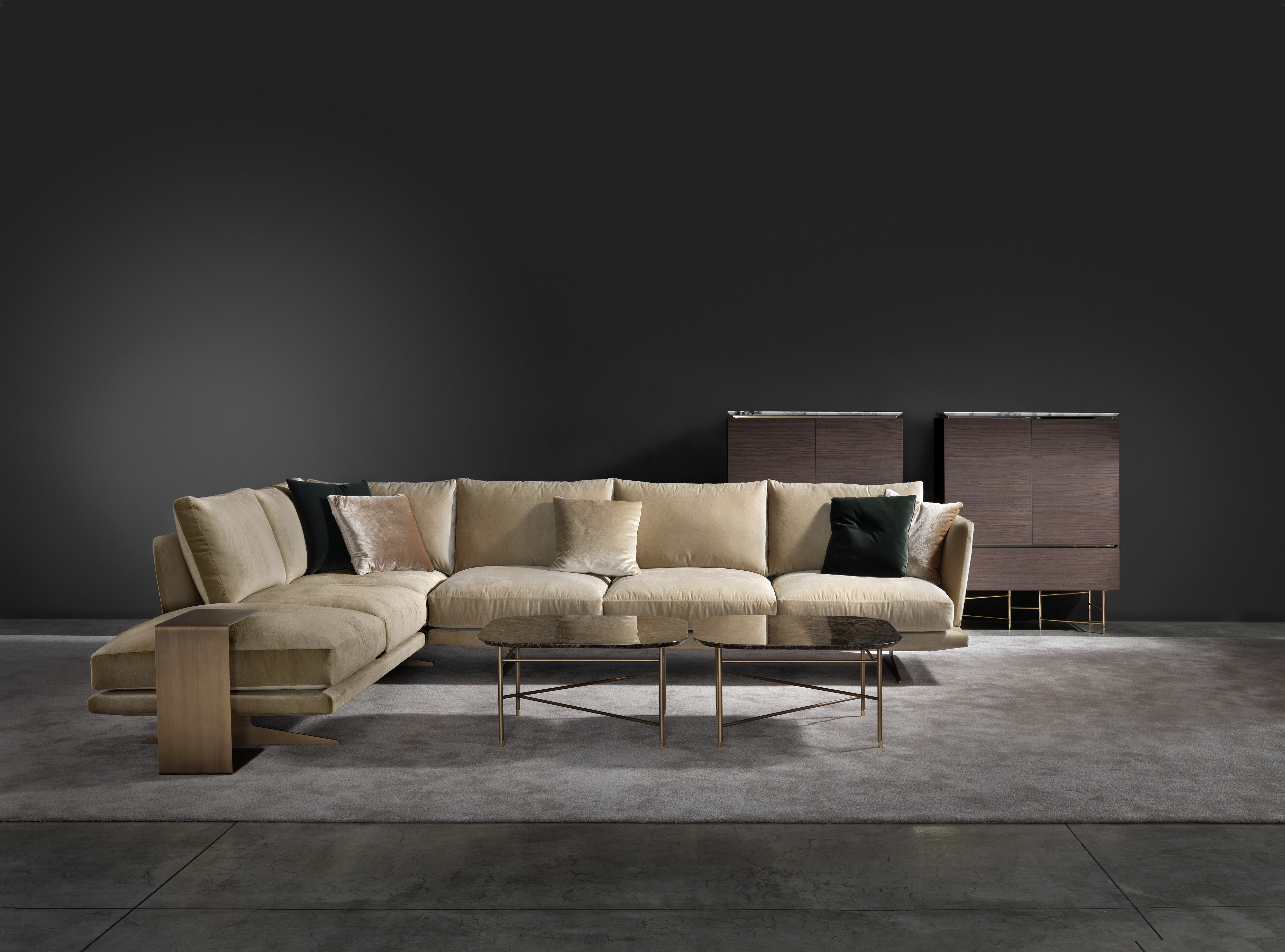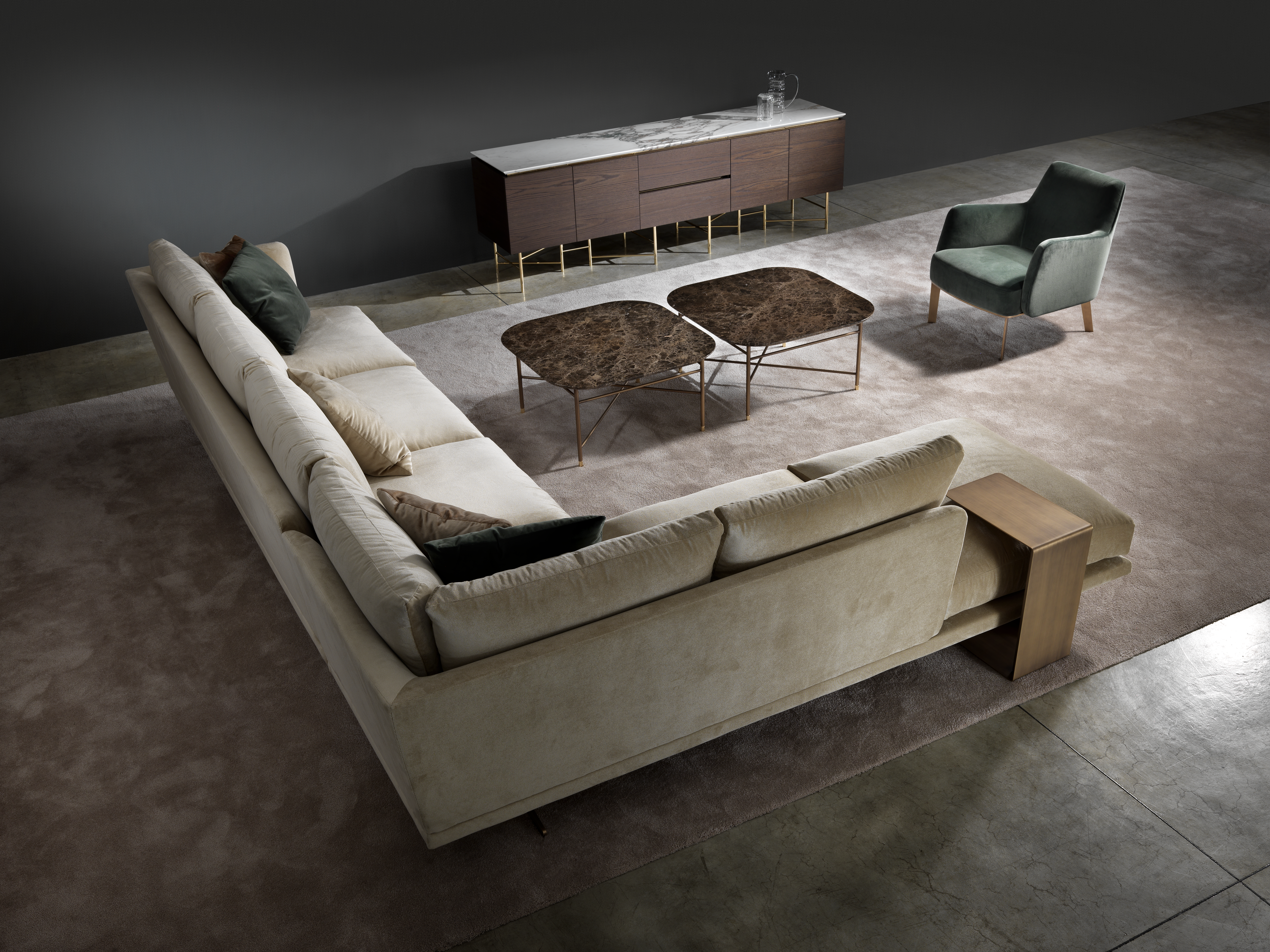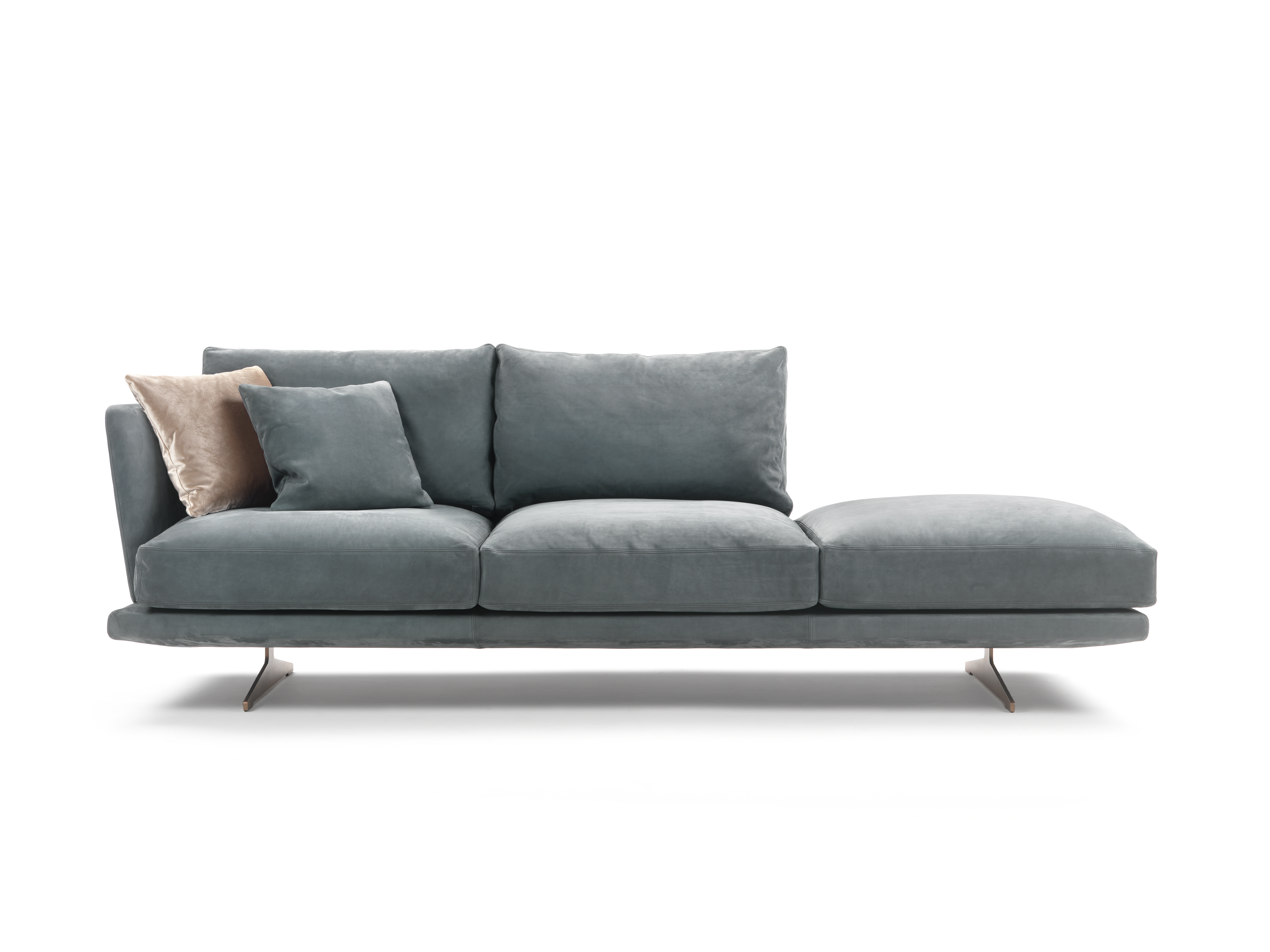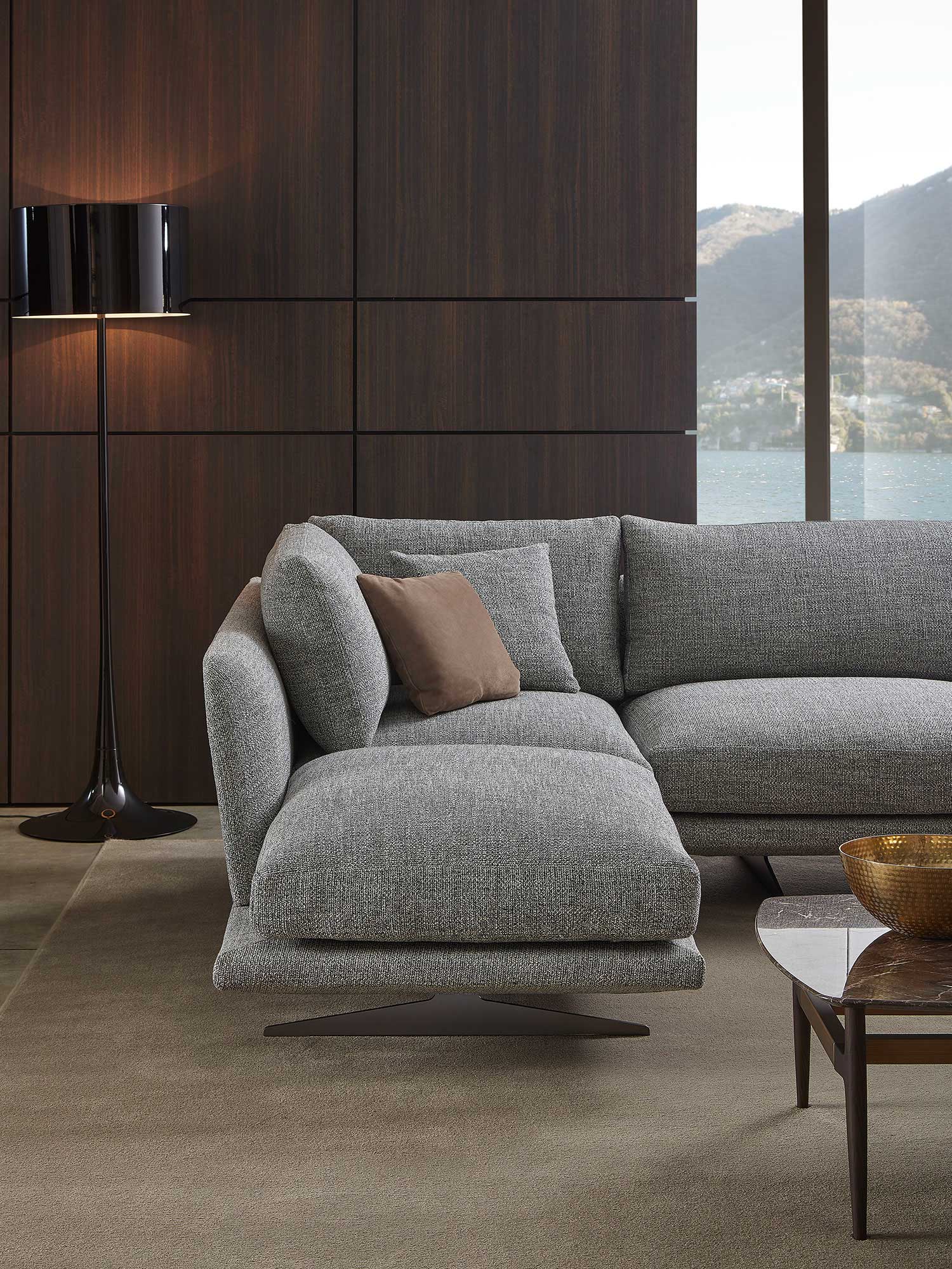 Collection of sofas and modular elements available in a range of base finishes and fabrics.