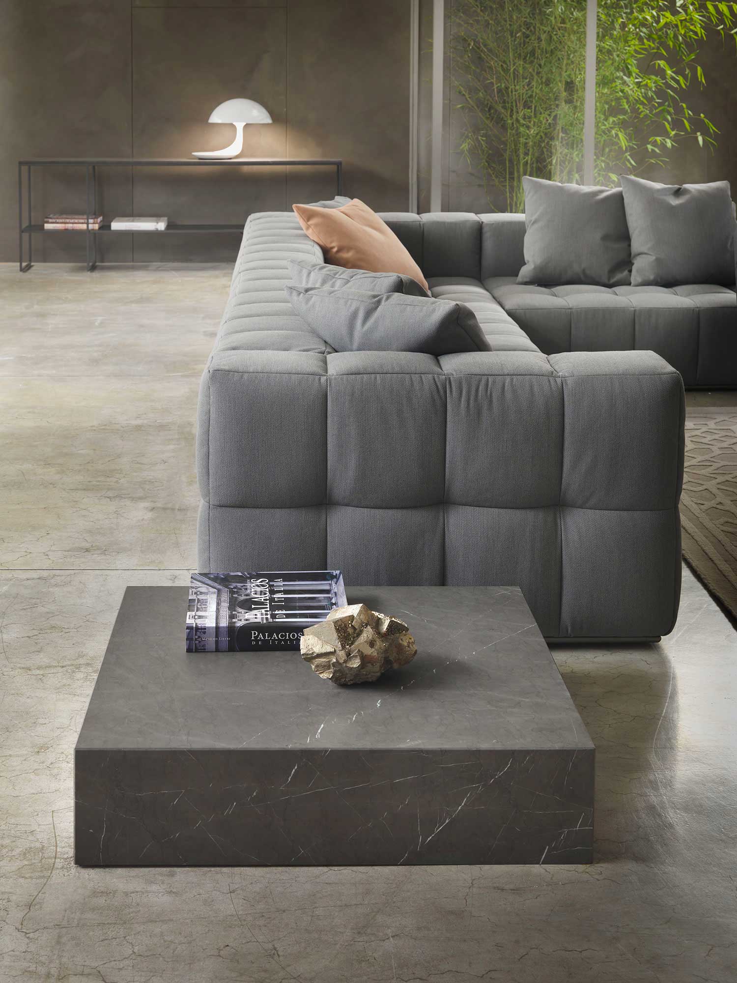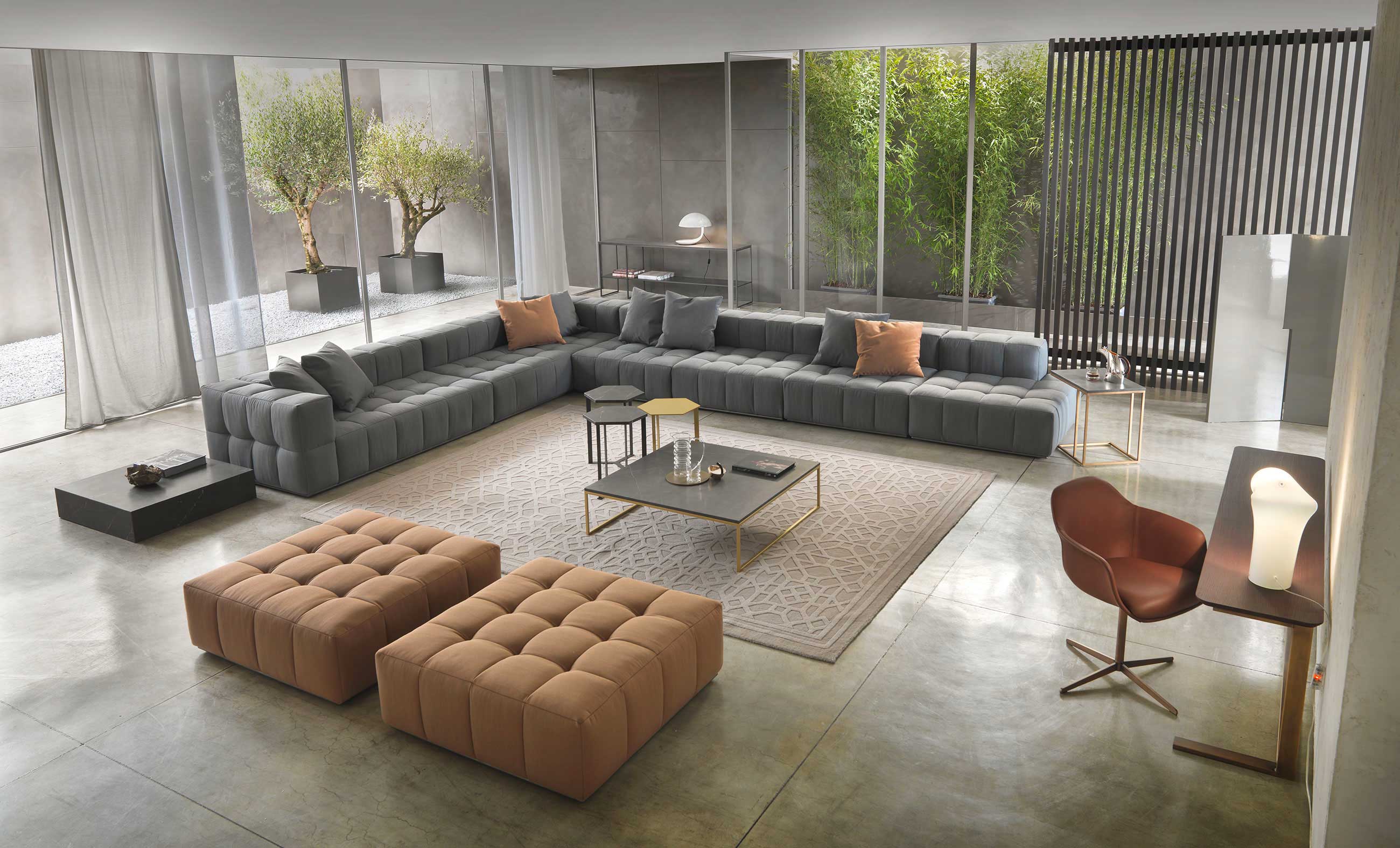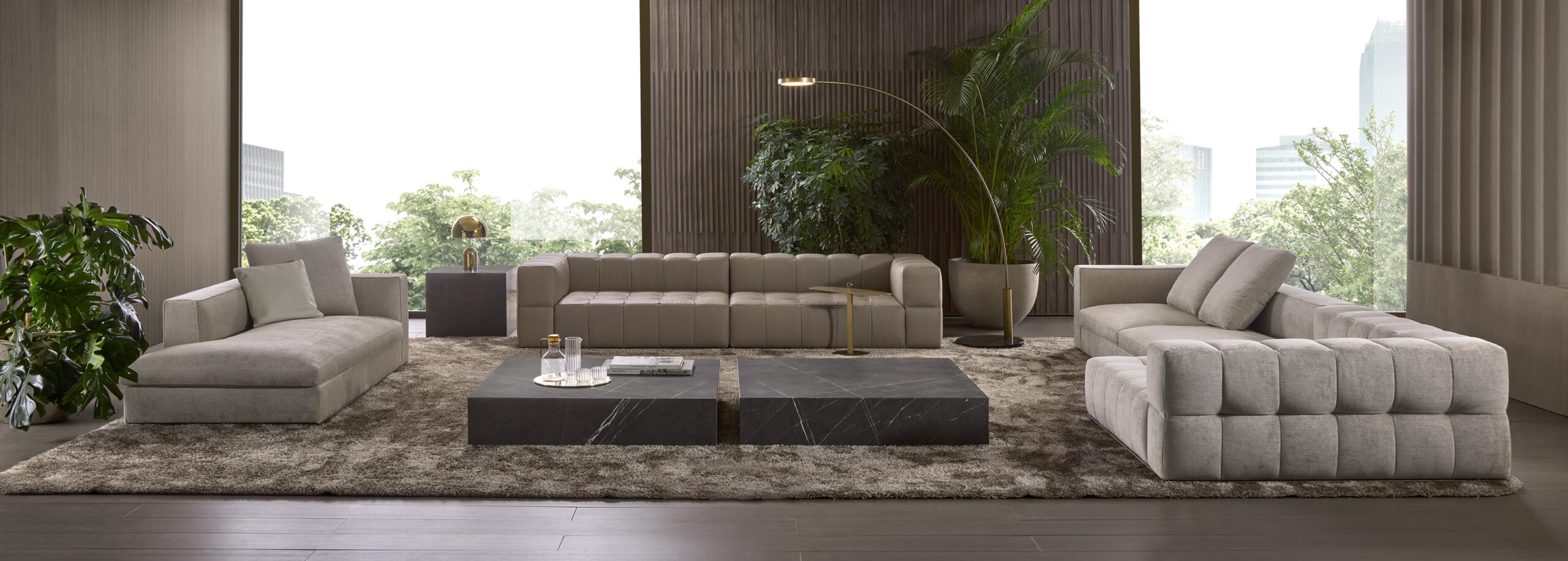 Collection of modular elements with an elegant and refined design, that can be combined in many different ways. The model is characterised by the entirely handmade quilting.
