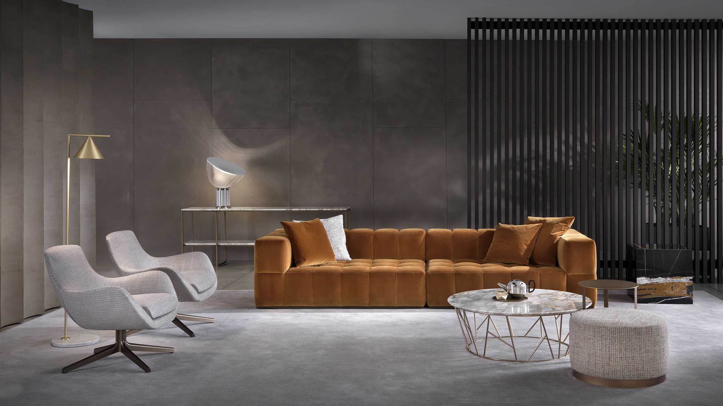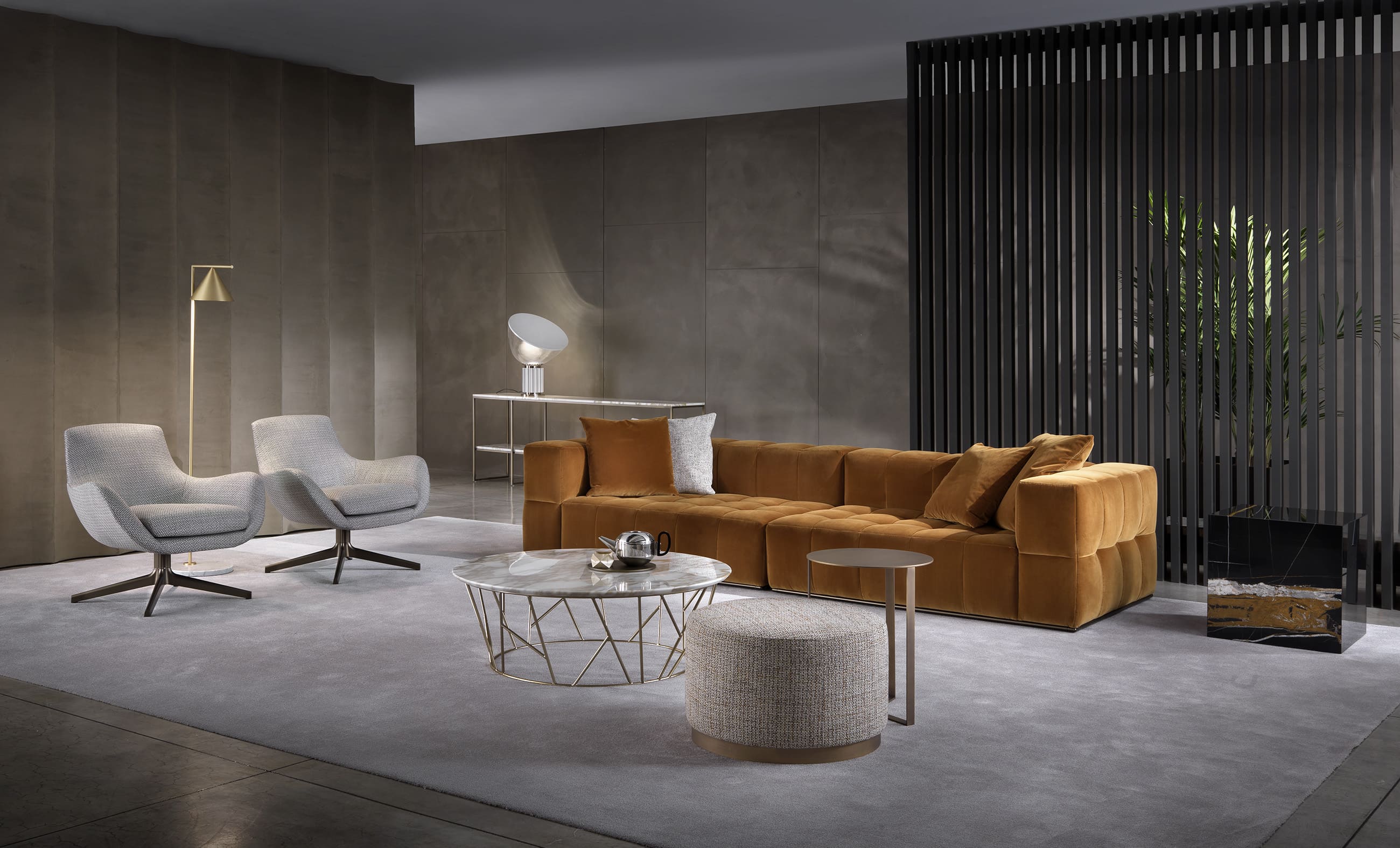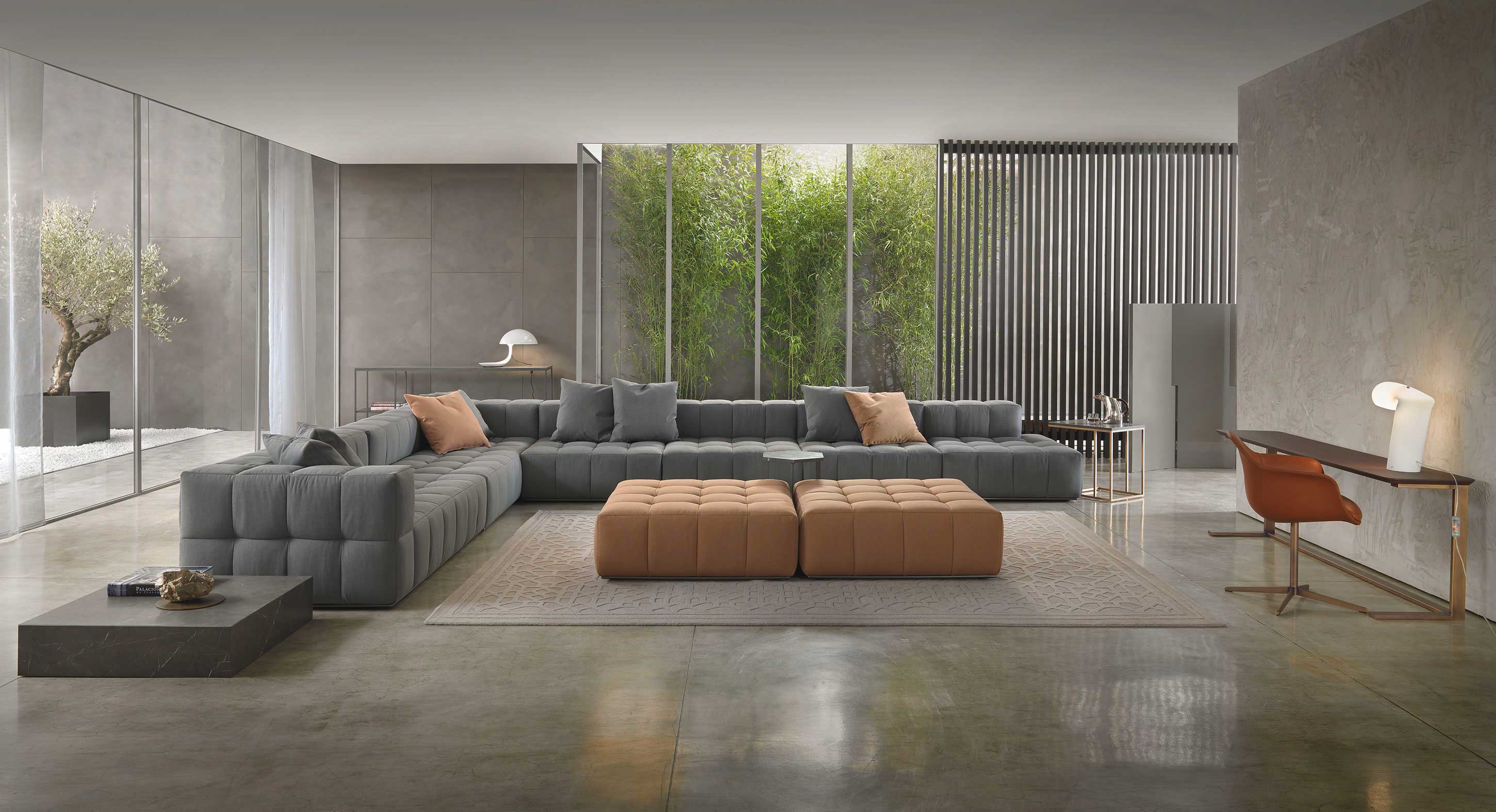 Collection of modular elements with an elegant and refined design, that can be combined in many different ways. The model is characterised by the entirely handmade quilting.