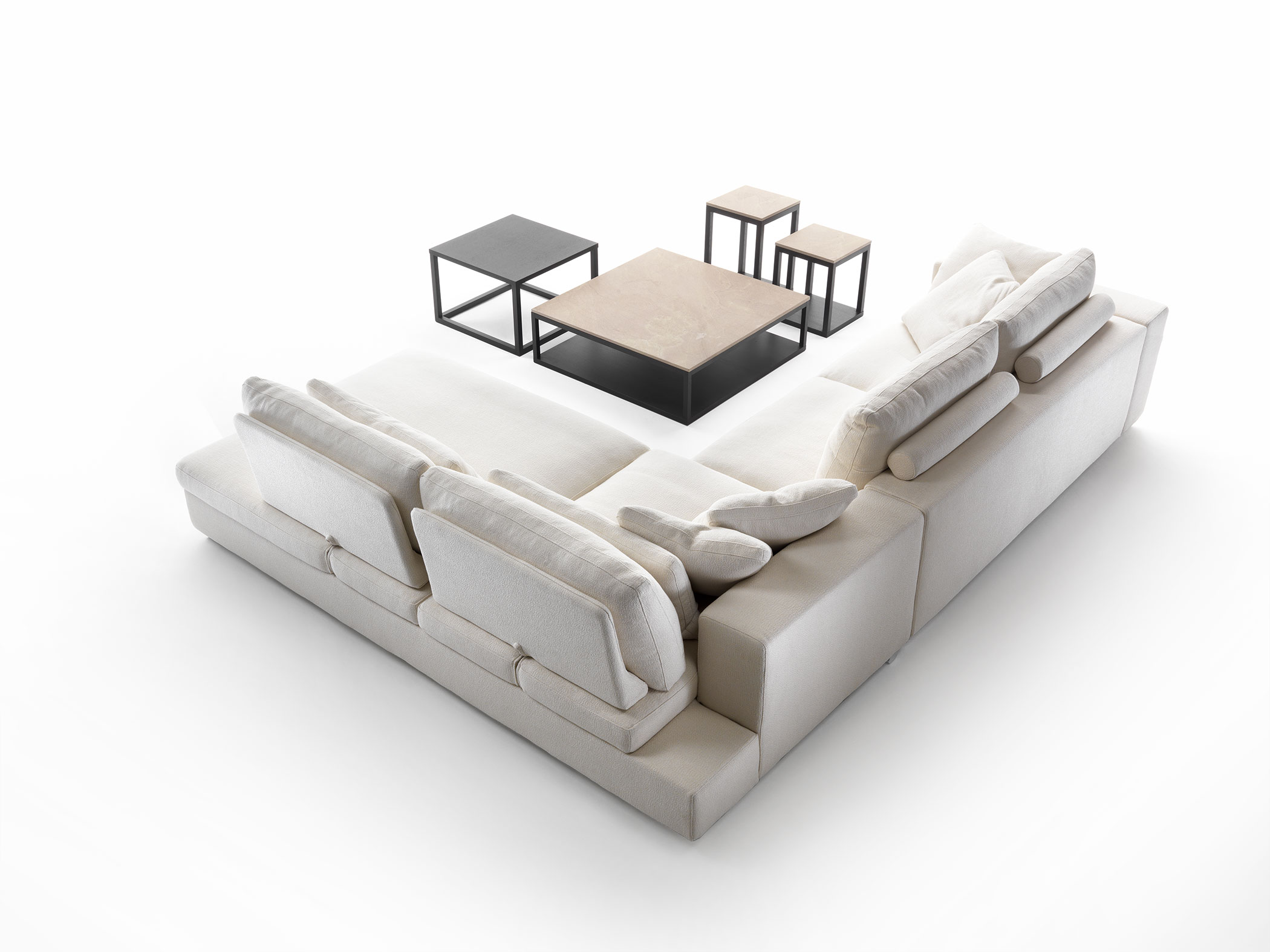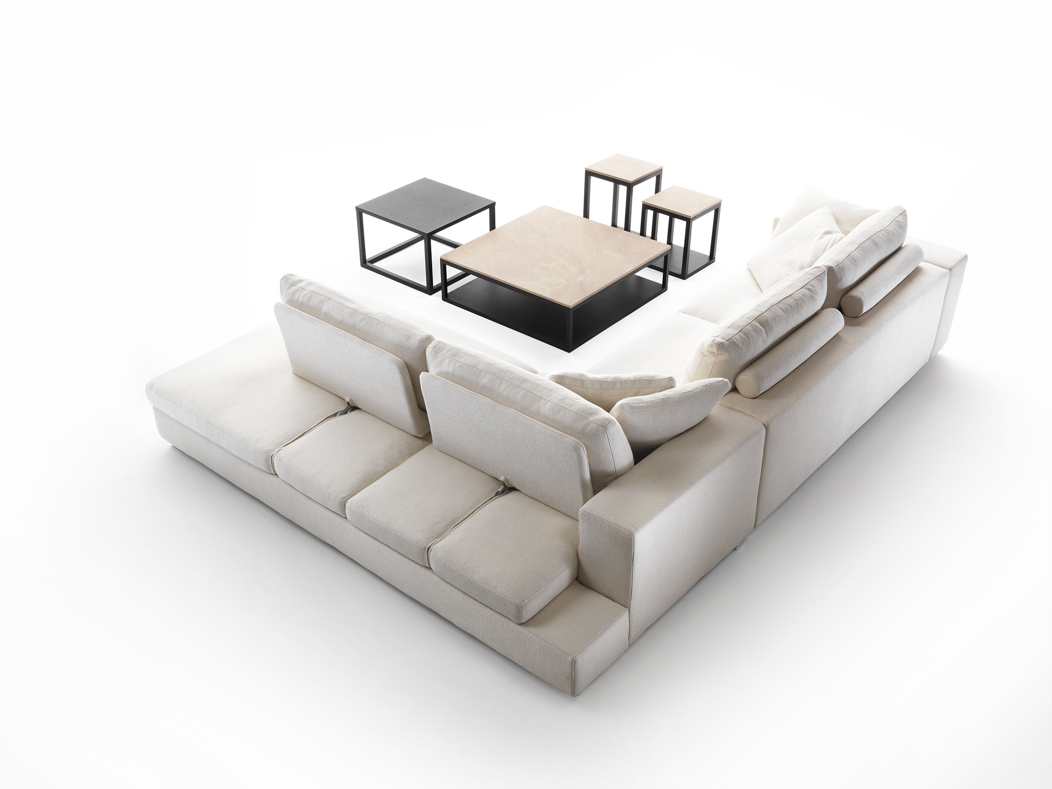 The Jack collection offers a wise range of sodas, armchairs, modular elements, corner elements, longchairs and sofabeds, that can be manufactured with three different depths: 100cm, 110 cm and 120cm. The high seating ensures comfort. Jack is also available in the Jack Move version, consisting of a series of sodas and longchairs equipped with functional backrests that can be adjusted to reduce seat depth.