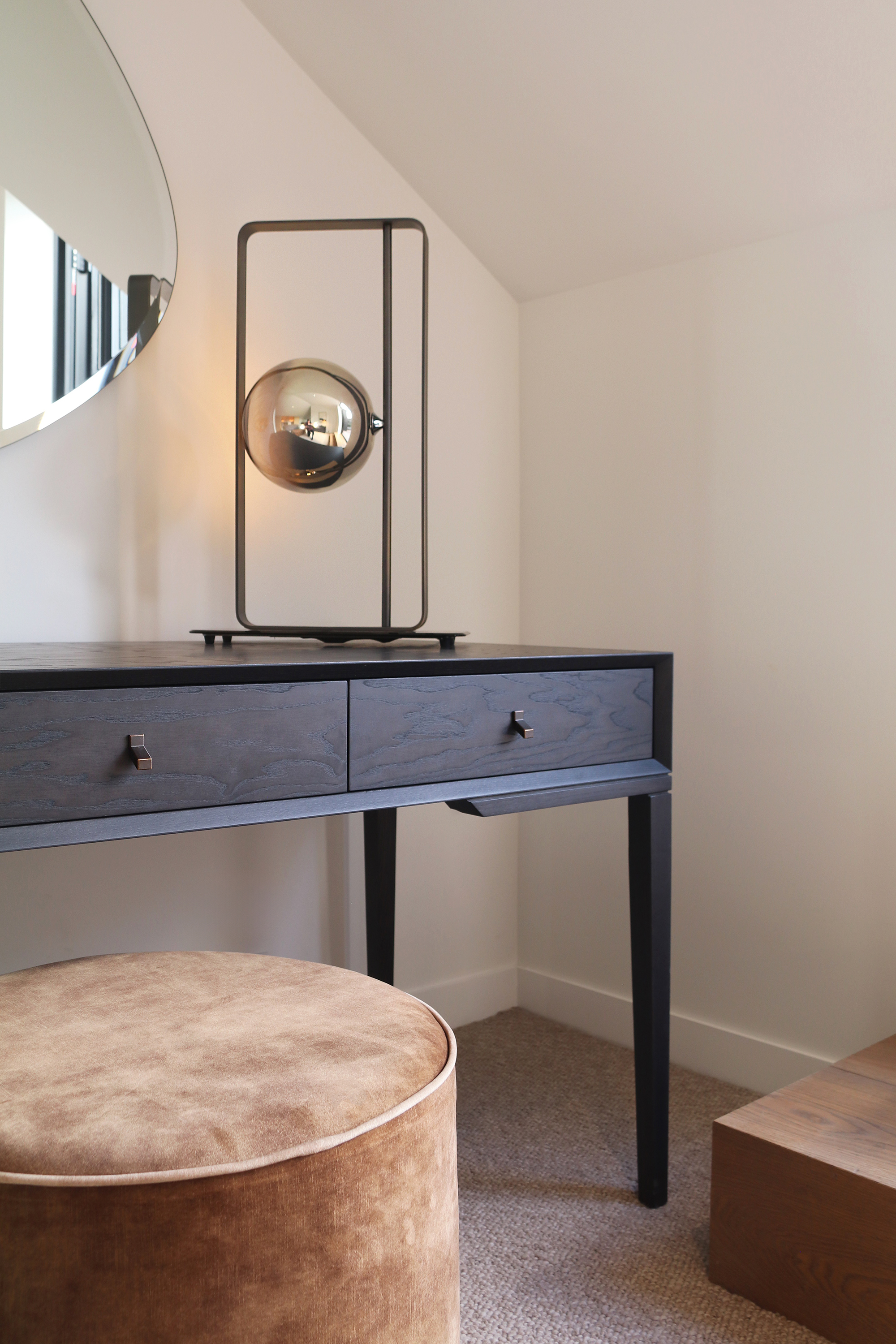 Desk with 3 soft close drawers, made of either American ash for a stain finish or MDF for lacquer.
