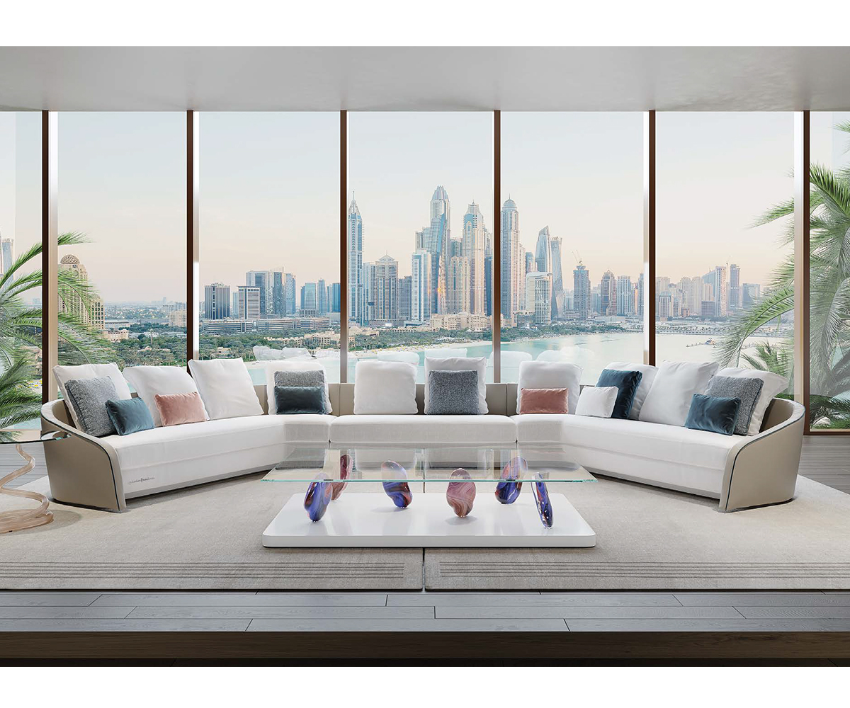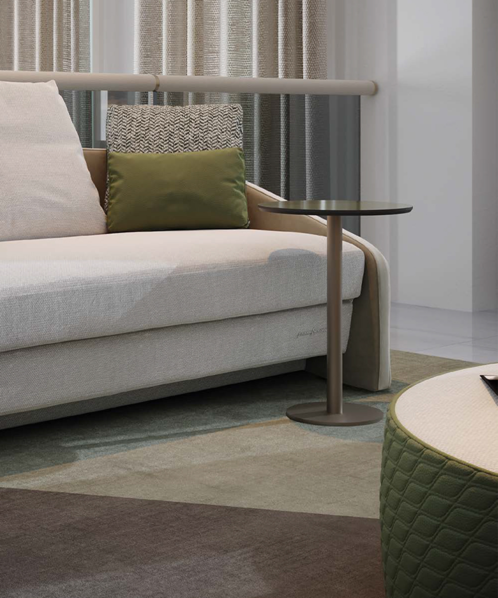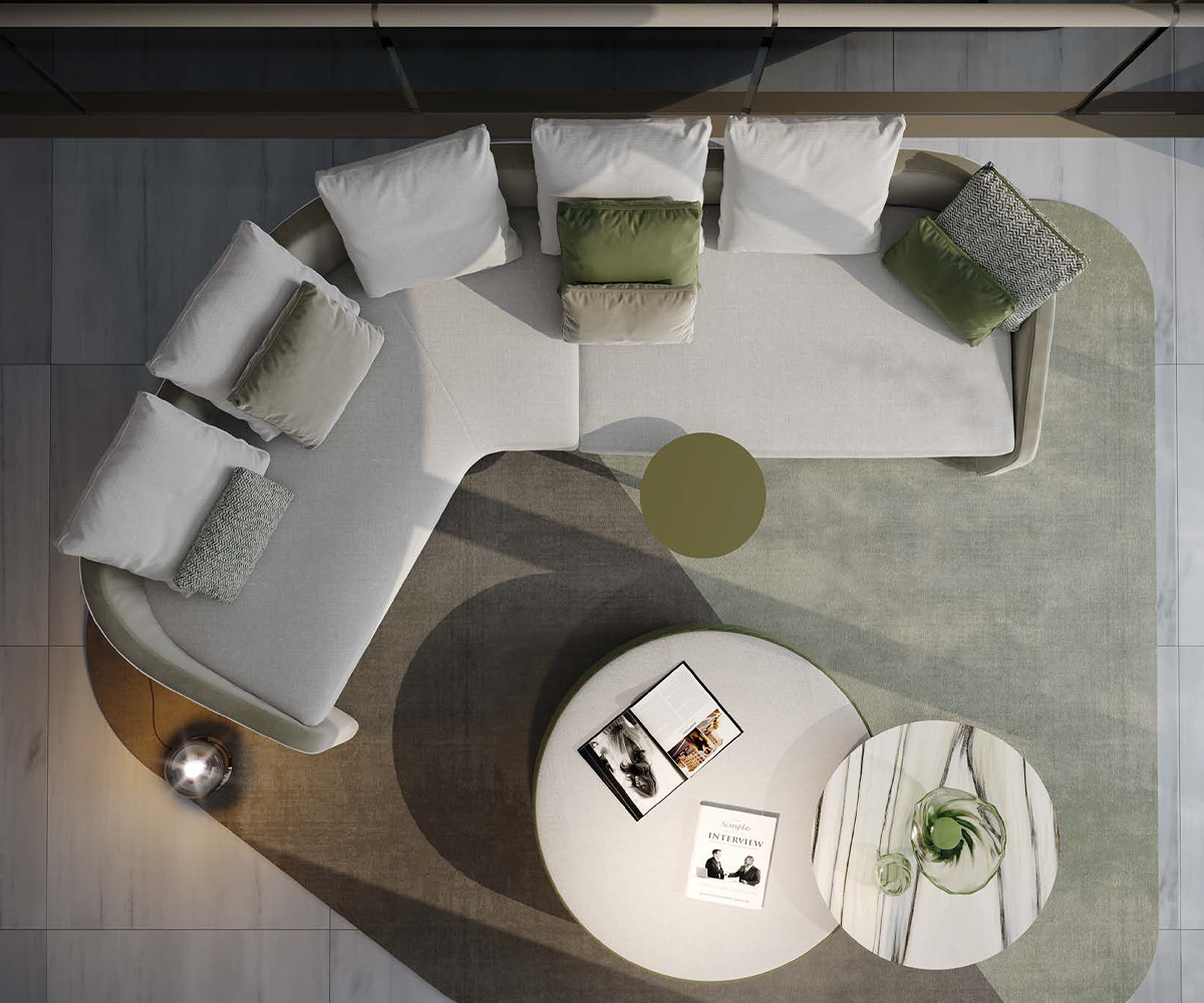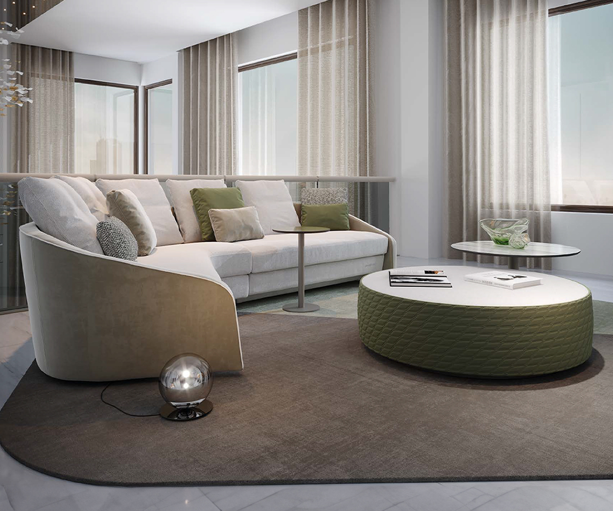 Modular sofa with variable seat depths enhanced by the different upholstery available in fabric or leather. Customisable w/ piping and contrast stitching.