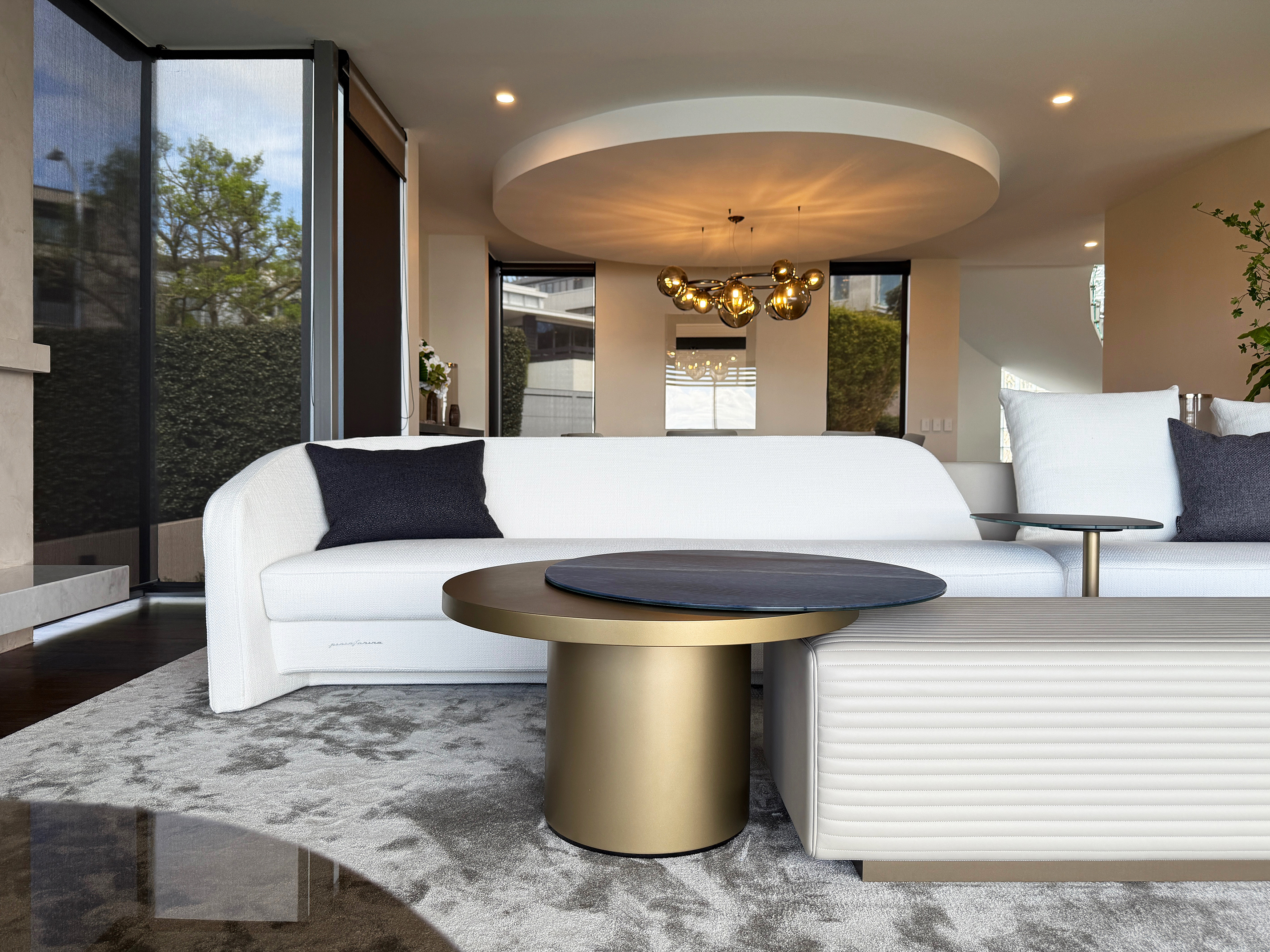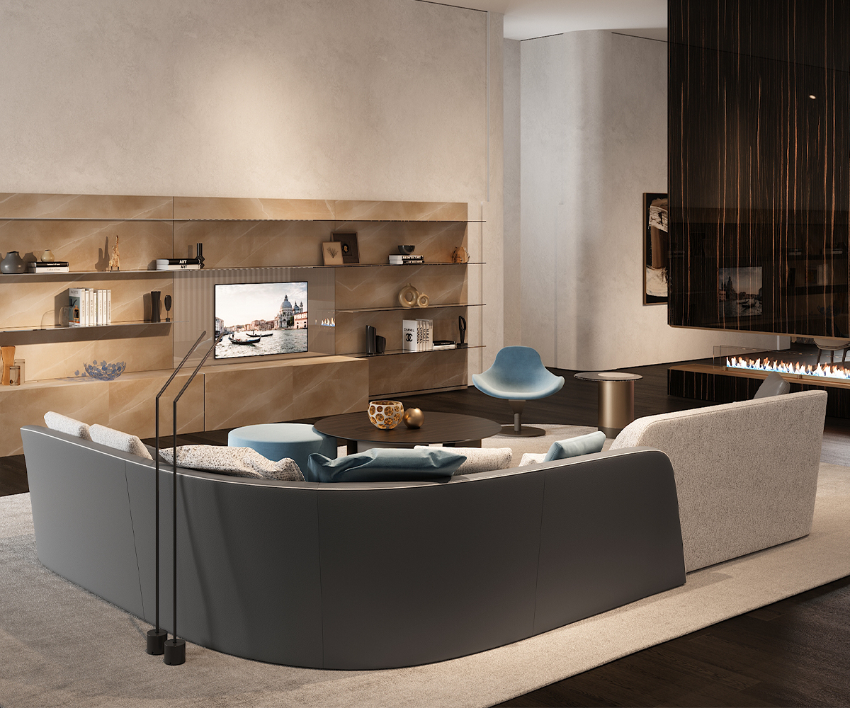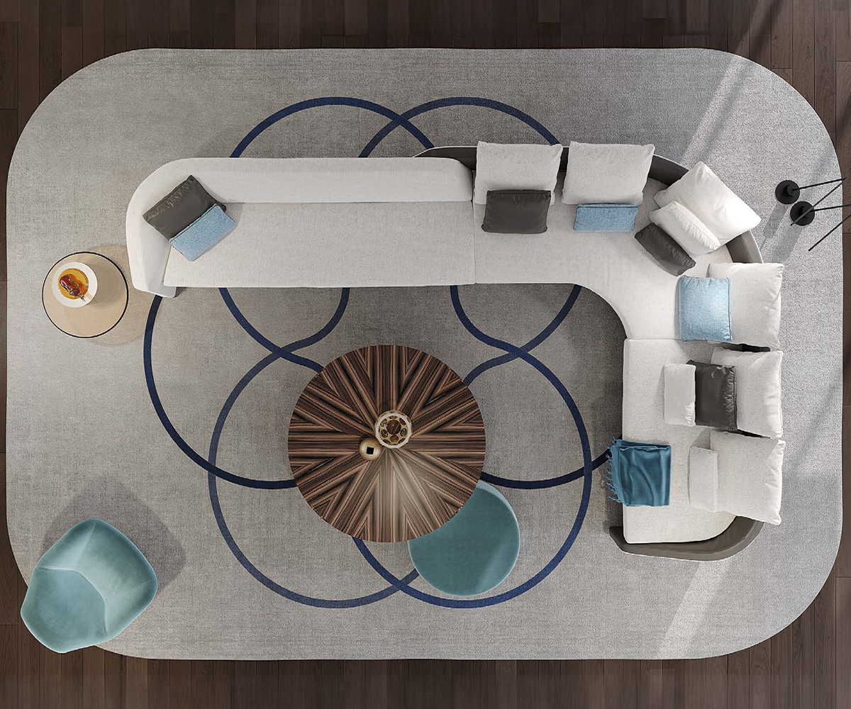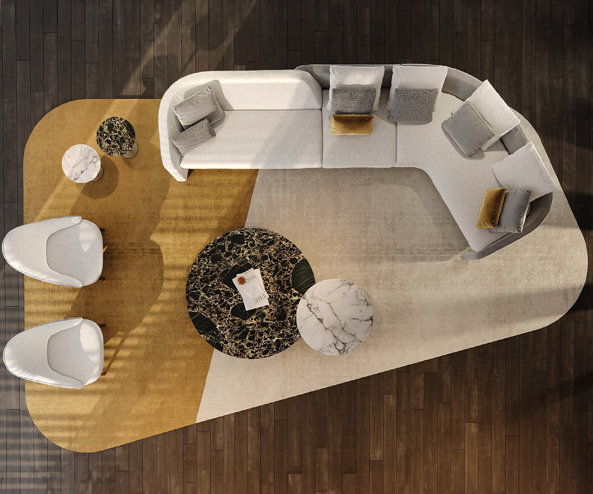 Modular sofa with variable seat depths enhanced by the different upholstery available in fabric or leather. Customisable w/ piping and contrast stitching.