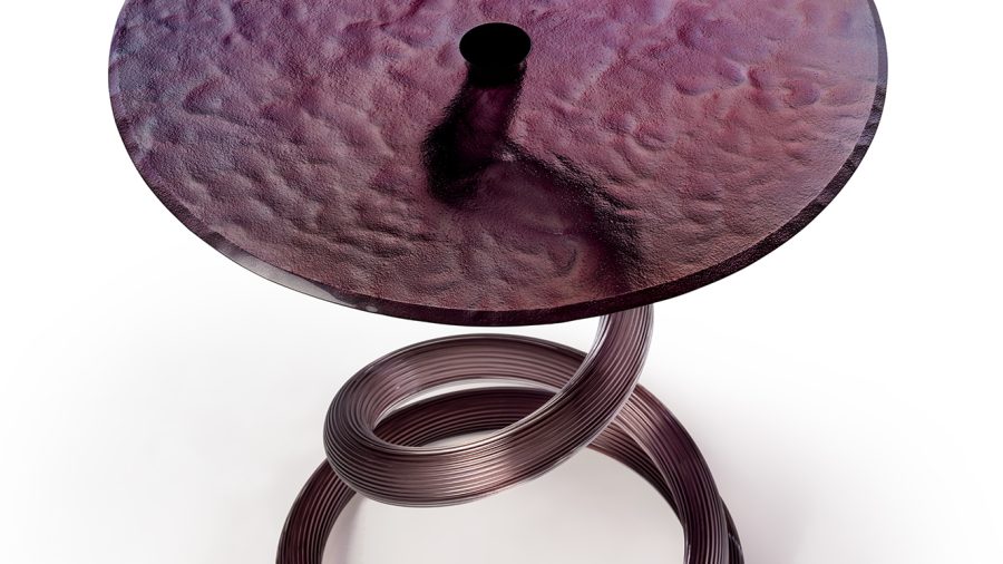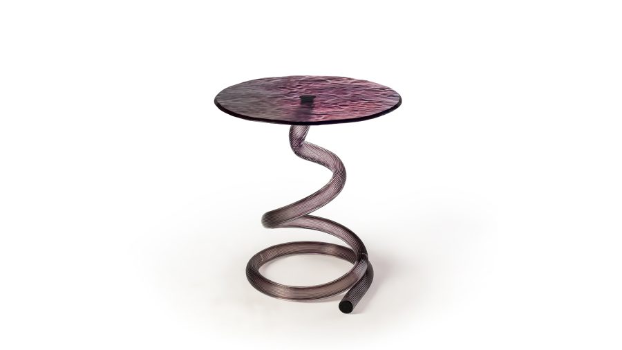 Side table with base in ribbed Murano glass: transparent, black, amethyst, tea or gold. Glass top 10 mm th. with 45° bevel.