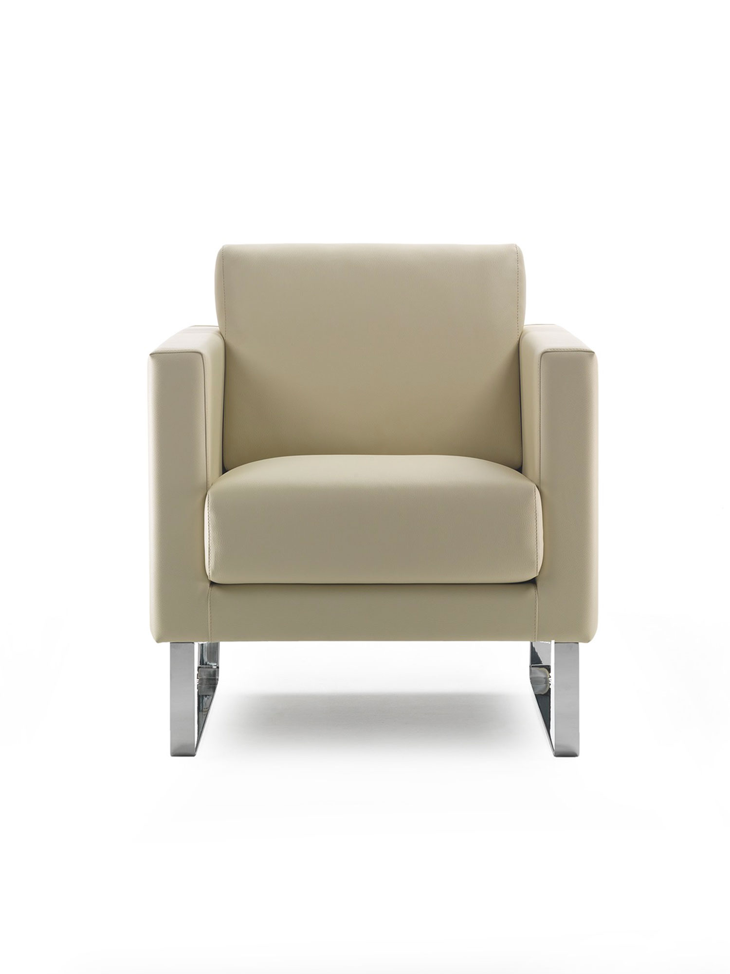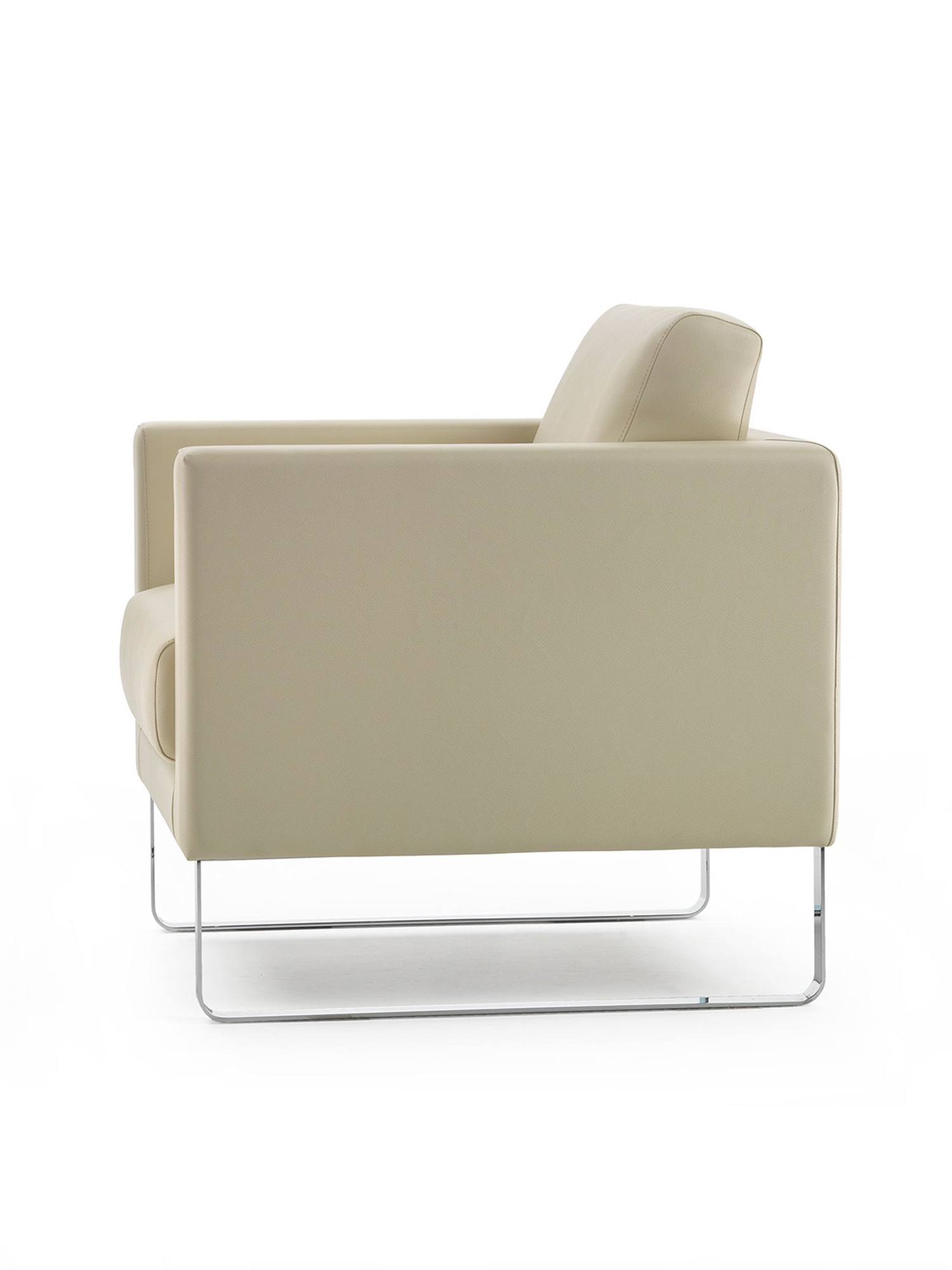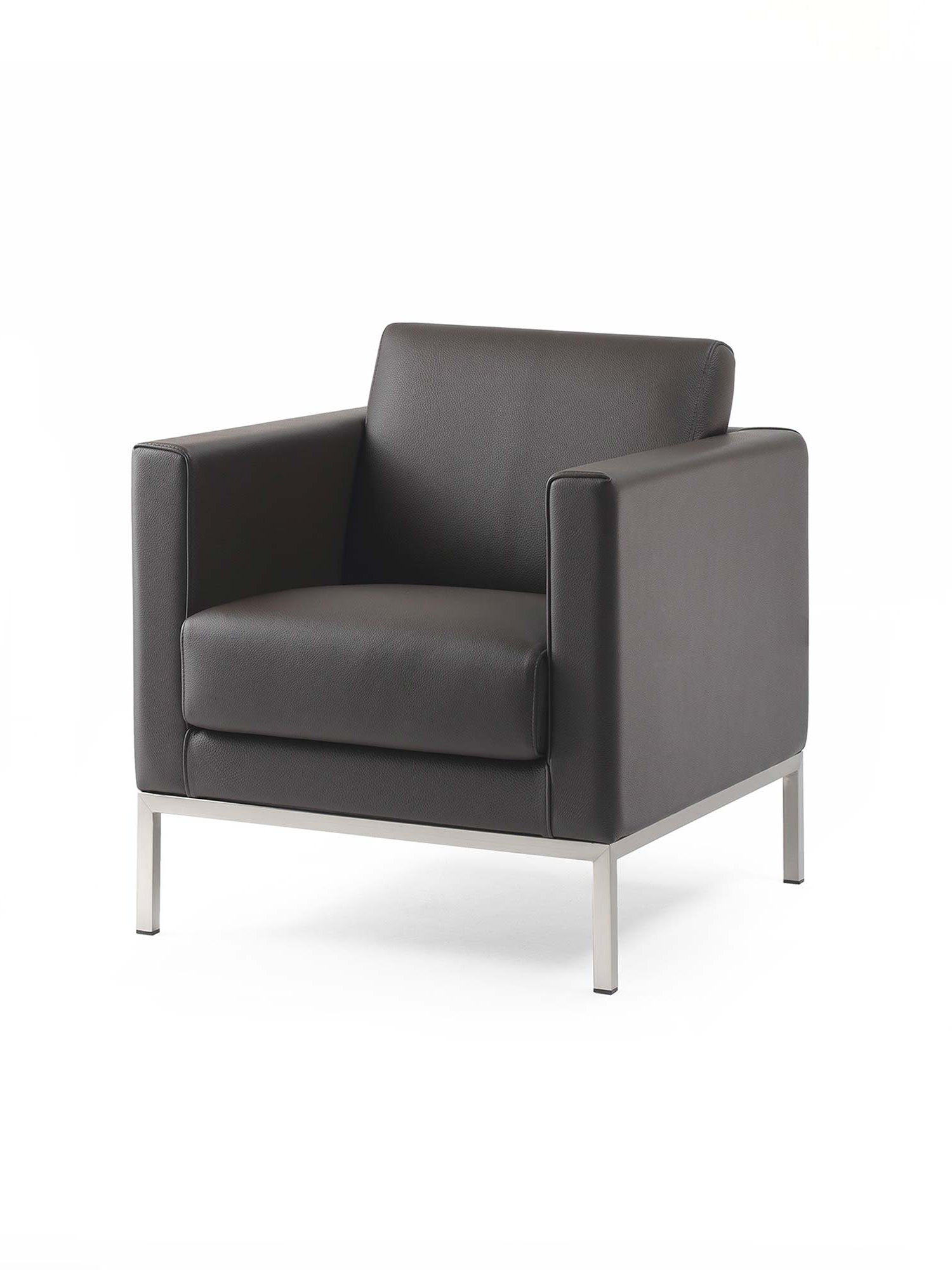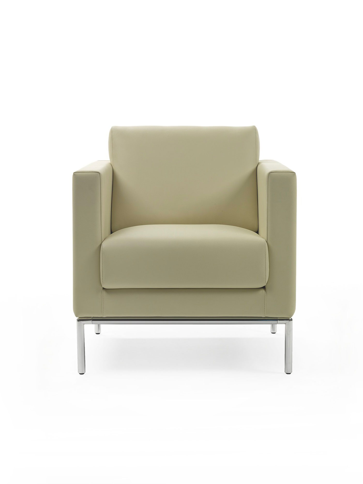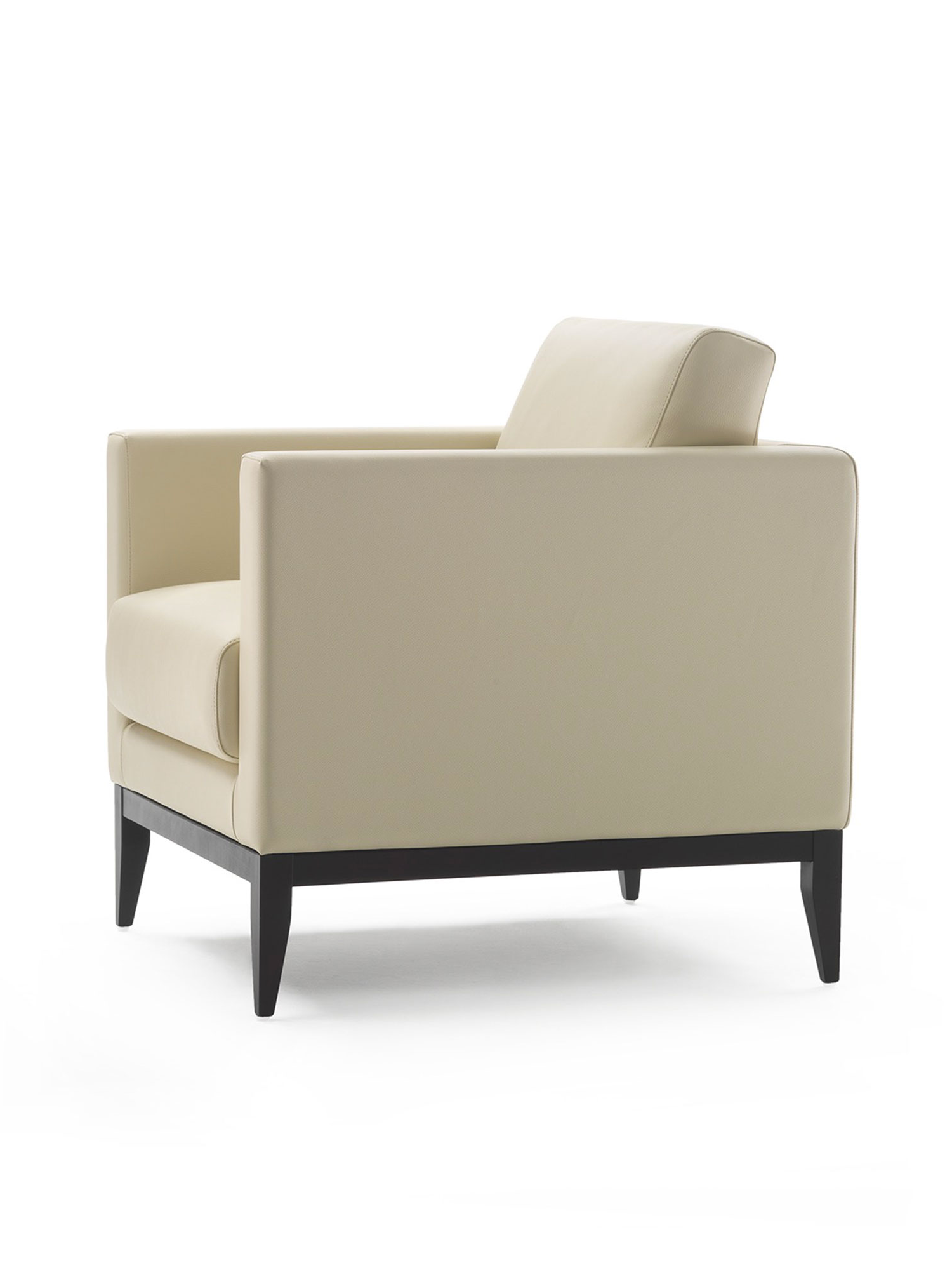 Minimalist armchair available in various leg types and a range of finishes and fabrics.