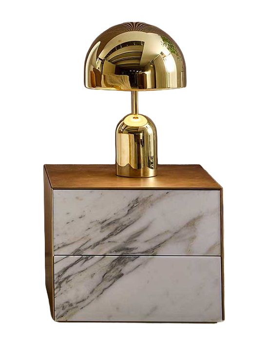 Bedside table with two drawers available in 20 different types of marble. Structure available in wood, lacquered gloss or matt.