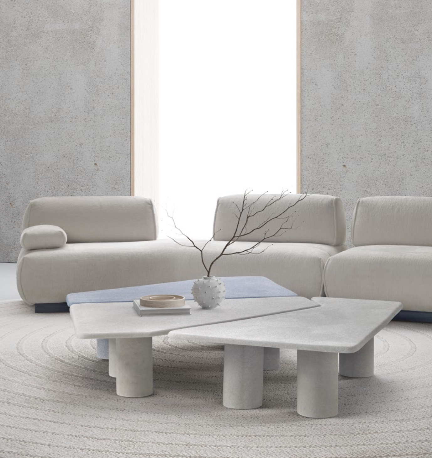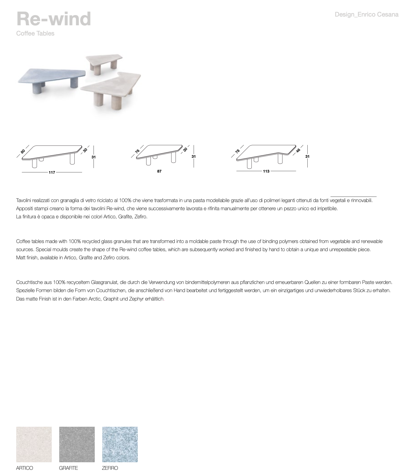 Coffee tables in 100% recycled glass with a matt finish - 3 colour options.