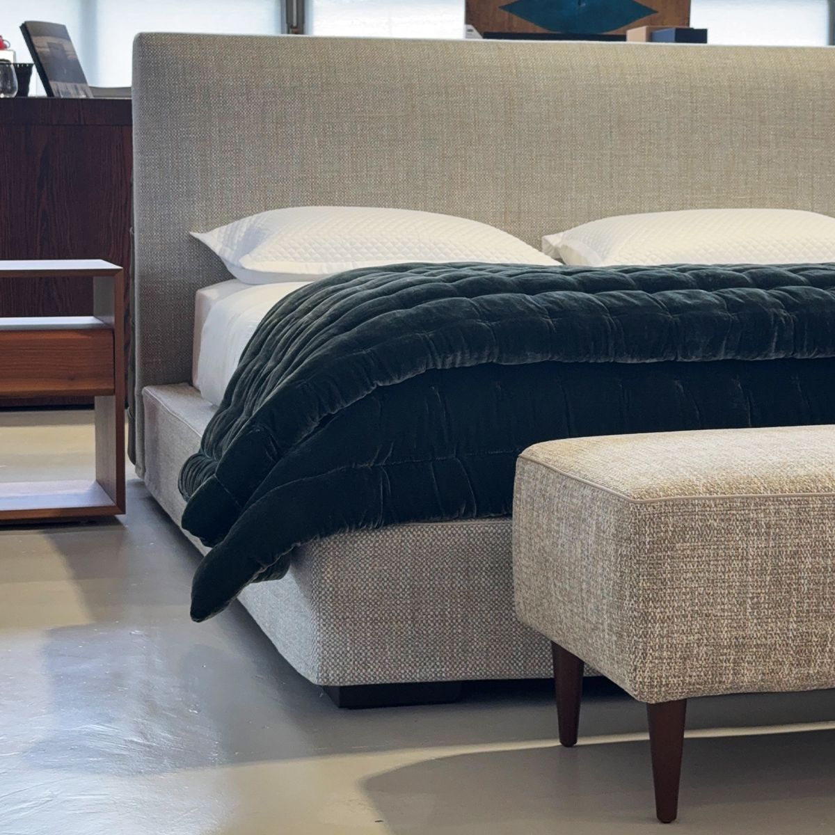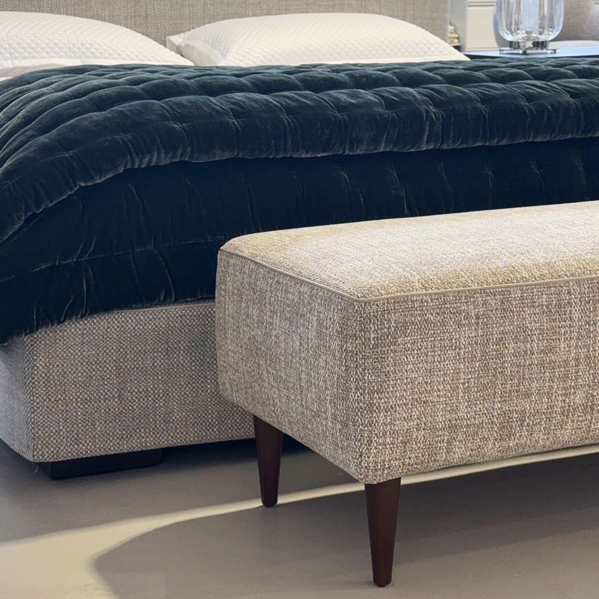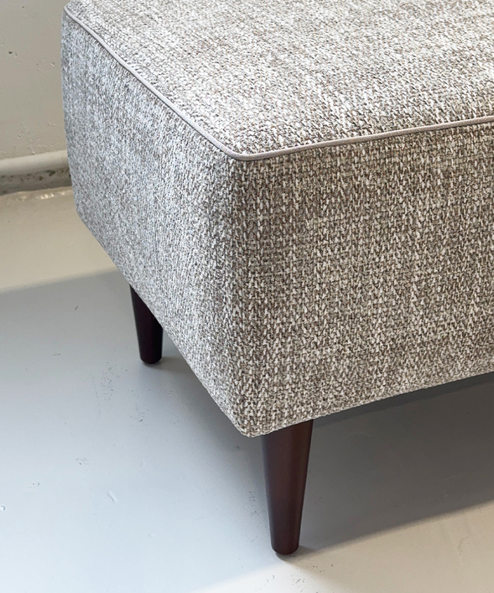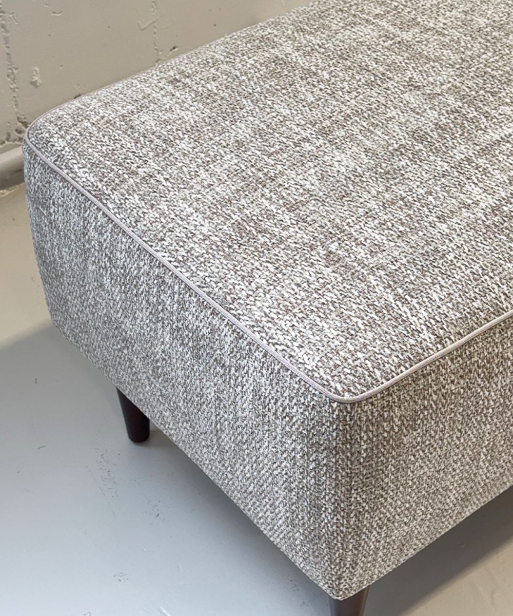 Bench seat with a fixed cover upholstered in a wide range of factory fabrics or leathers, alternatively you can have you own fabric sent to the factory to be upholstered. Soild beechwood legs available in a selection of finishes.