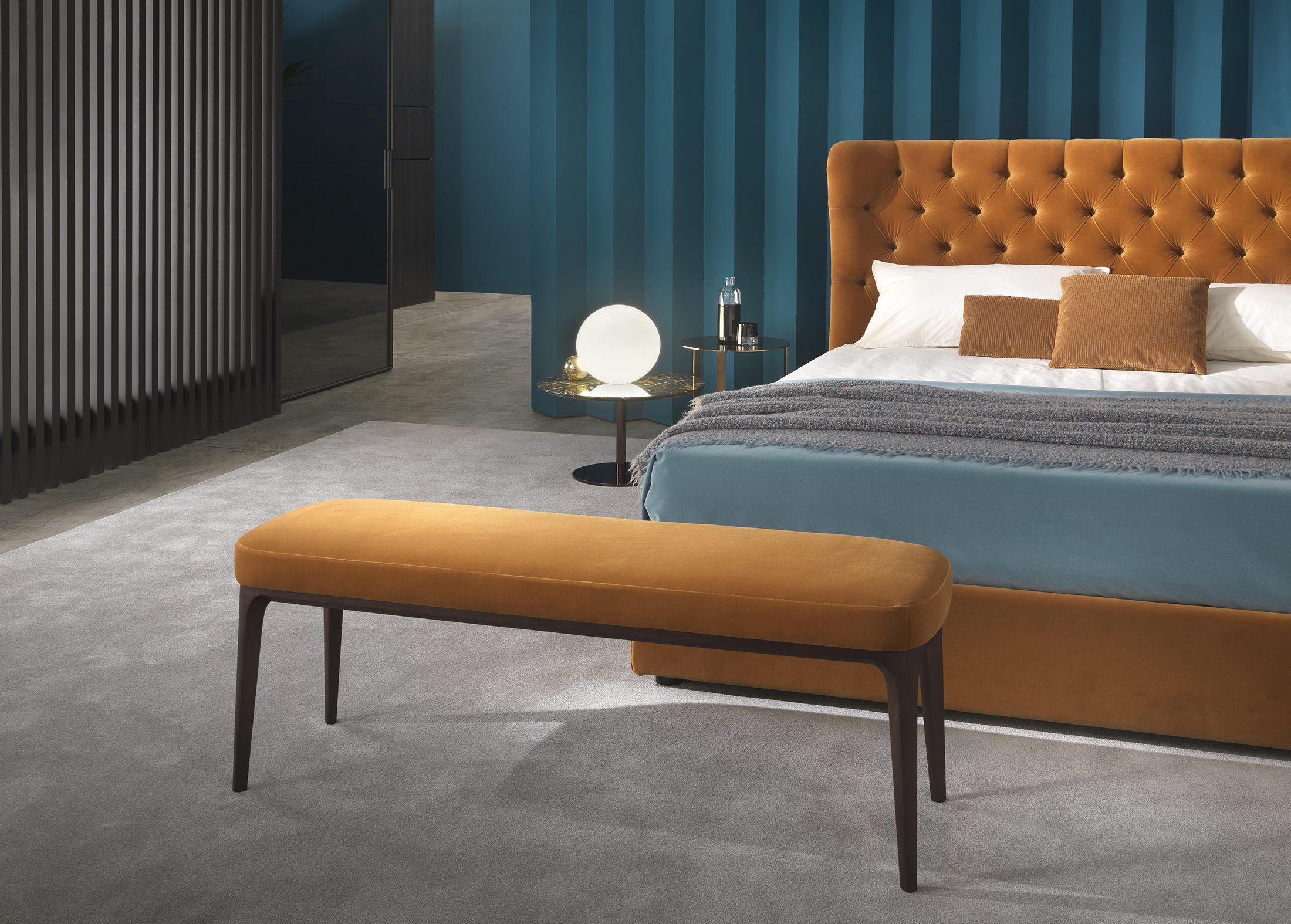 Bench seat with a oak wooden base, available in a range of stain finishes or fully upholstered in fabric or leather to match the seat.